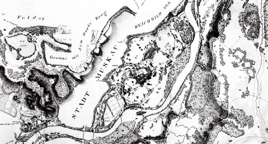 其中,1886年参观德国平克勒亲王(Hermann Puckler)规划的慕思考(Muskau)庄园对他产生了深刻影响。慕思考庄园(图2)是德国早期风景园林规划的佳例,建于1811—1845年,占地超过700公顷。在写给奥姆斯特德的信中,埃里奥特流露出慕思考庄园对他的巨大触动。“慕思考也许是这个世纪在欧洲建设的大尺度风景园林规划最佳项目,它使得人们对风景园林这个职业肃然起敬。这原是在一片广阔荒地中的河谷,边缘生长着众多怪异的丛林,不可能因美丽或有趣而引人注意。但现在是世界上最可爱的谷地了——充满了多样性或让人愉快的变化,充满了宁静和动人的美丽。[3]”慕思考在很多方面成为了埃里奥特以后规划项目中的原型,在如何转化场地固有特征,加强自然特性方面,平克勒对埃里奥特产生了持久的影响。