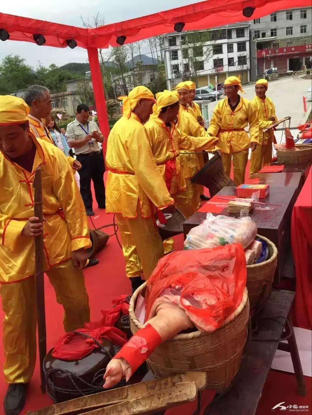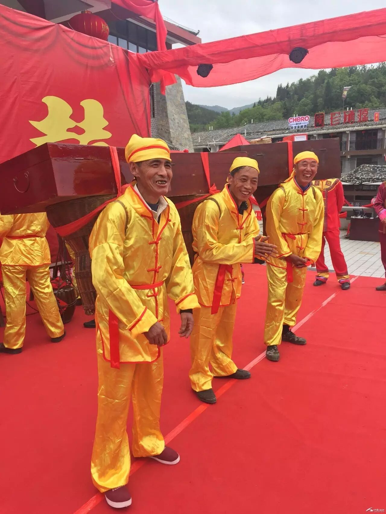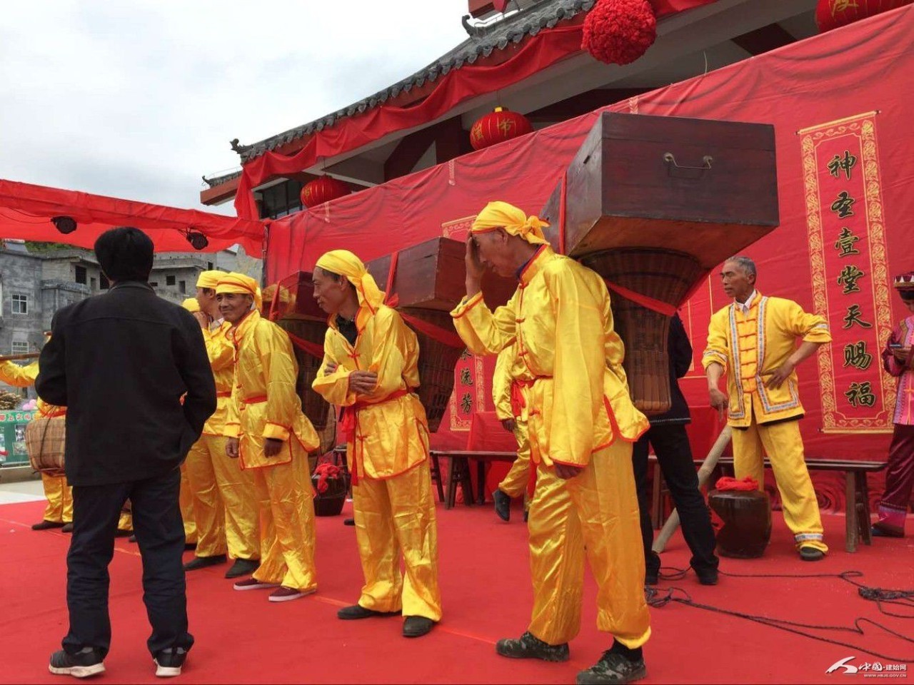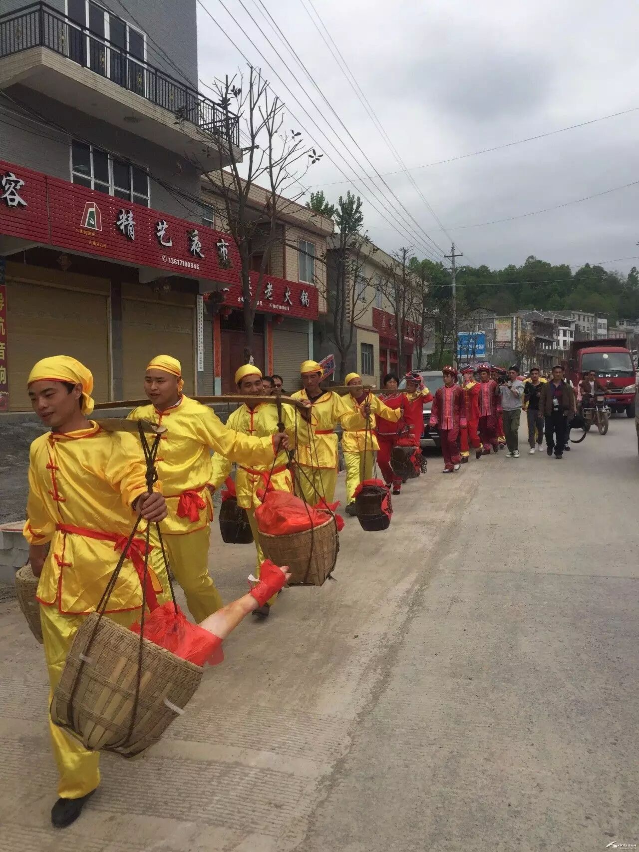 都管带着挑夫、新郎与伴郎去过礼。记者付小平
