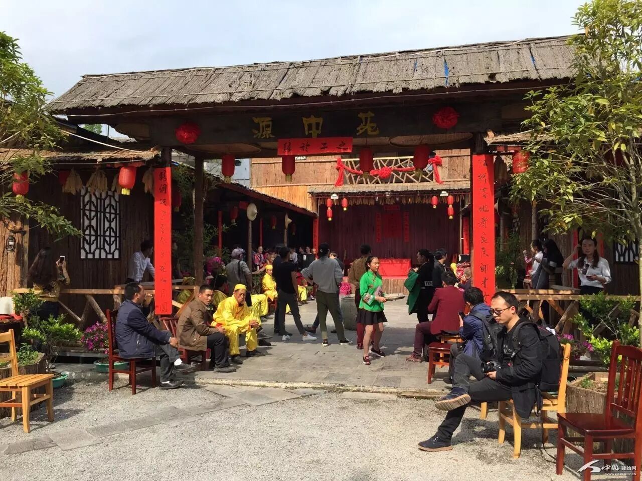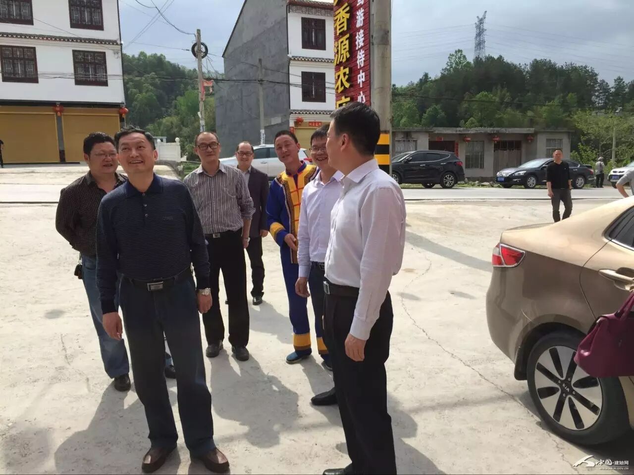 州文广新局局长王坤德在县委常委、宣传部部长费东海的陪同下来到“情定石门河”民俗婚礼现场指导。记者刘定坤