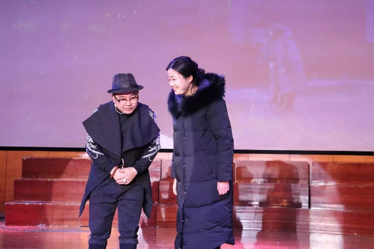 随后杨青龙老师邀请了我校的冯娟老师与他一起同台表演,说要亲授她腹语秘诀。