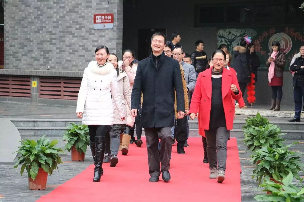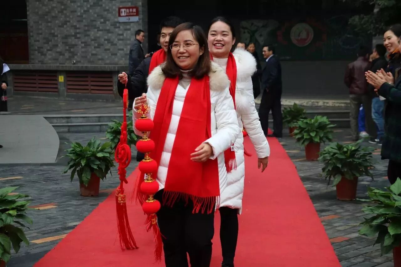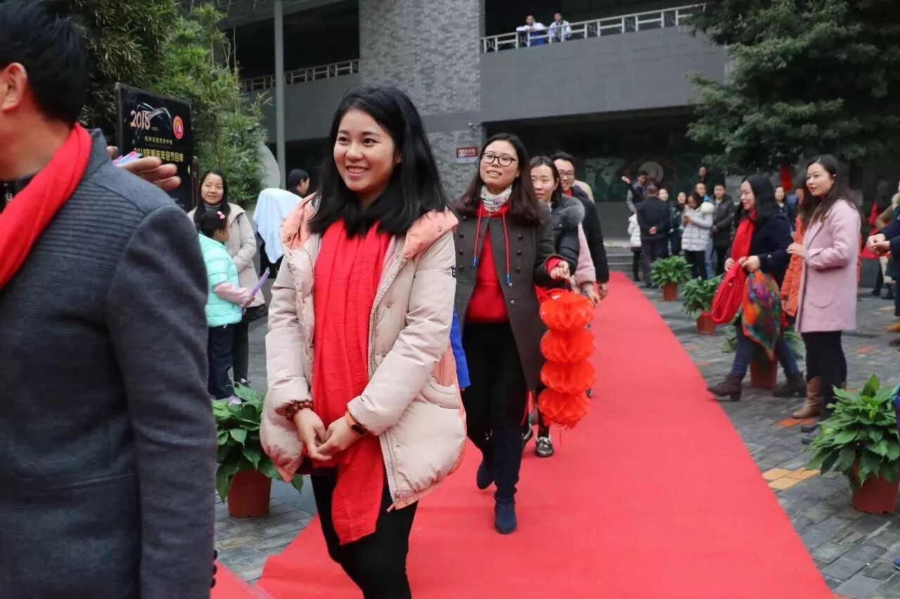 短短一段红毯,老师们其实就已经在上面秀起了他们的才艺,各个备课组都展开了大“PK”。从《新年好》到《恭喜你》,从《两只老虎》到《两只小狗》,更是提前剧透了我们“四天”版的《成都》:“和我在四天的操场上走一走,知道寝室的灯都熄灭了也不停留……”