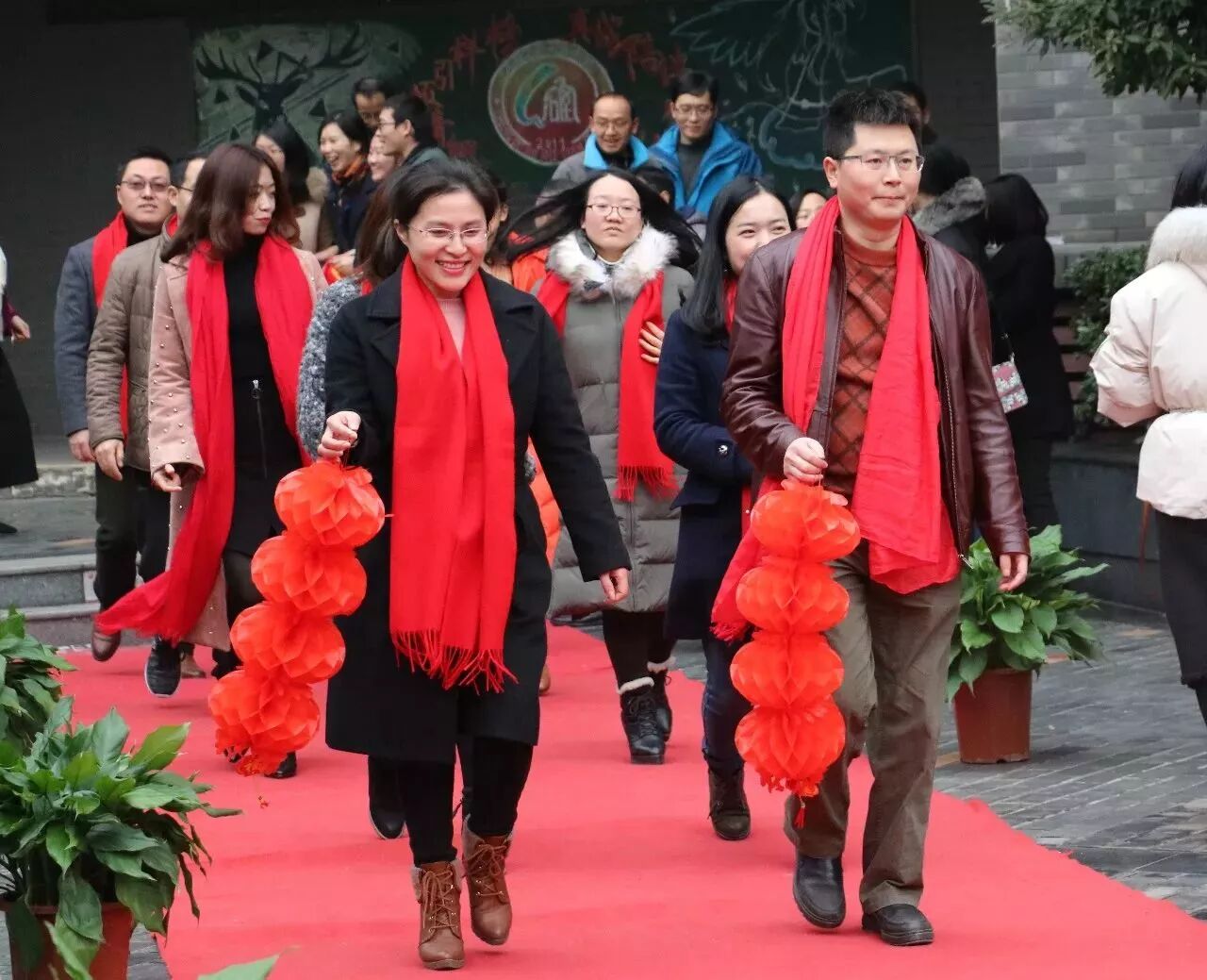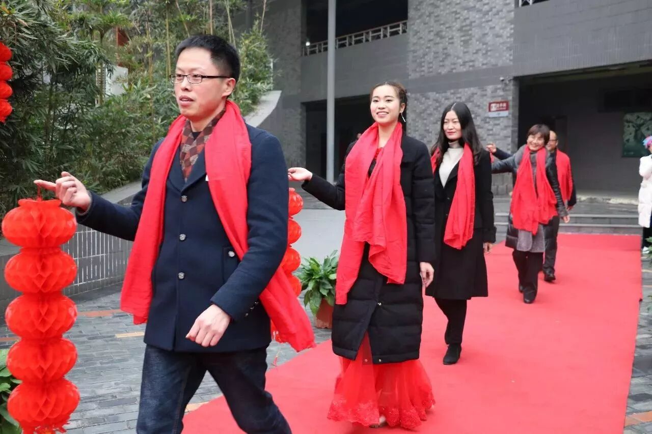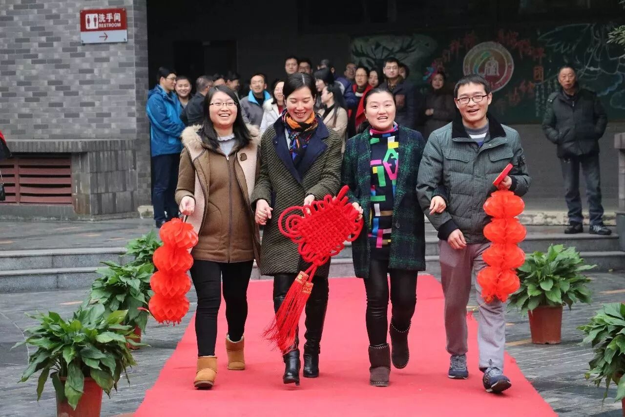 短短一段红毯,老师们其实就已经在上面秀起了他们的才艺,各个备课组都展开了大“PK”。从《新年好》到《恭喜你》,从《两只老虎》到《两只小狗》,更是提前剧透了我们“四天”版的《成都》:“和我在四天的操场上走一走,知道寝室的灯都熄灭了也不停留……”