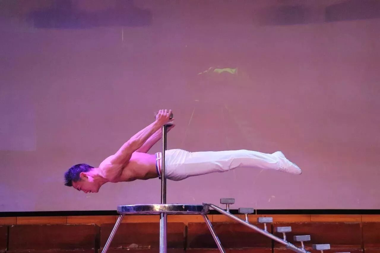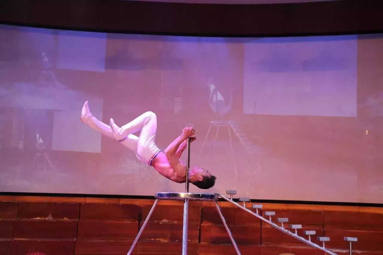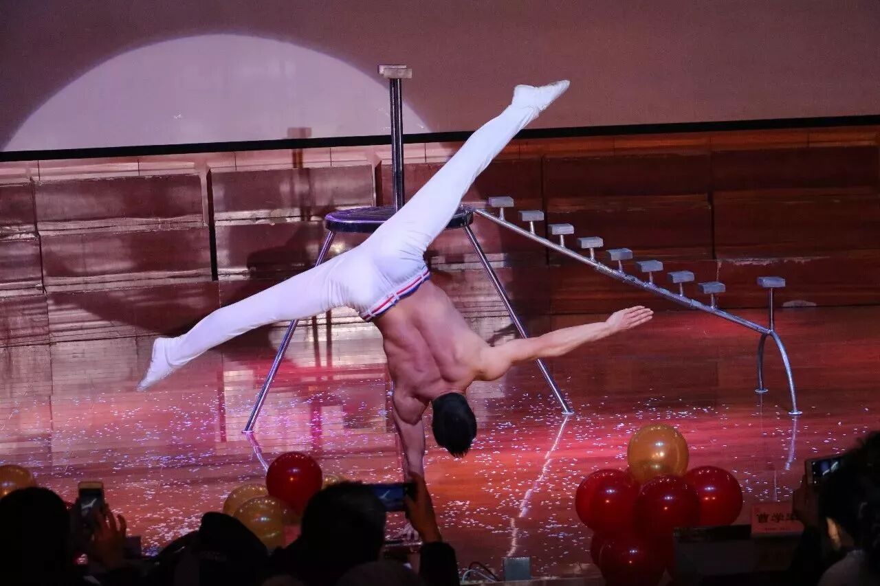 曾在美国演出8年,登上好莱坞表演舞台的杂技高手小海,为现场观众带来了一个又一个高难度表演。除了单手做出各种动作,更是用双手在支架上撑起真个身子做出各种动作,让观众感觉既新鲜又刺激!