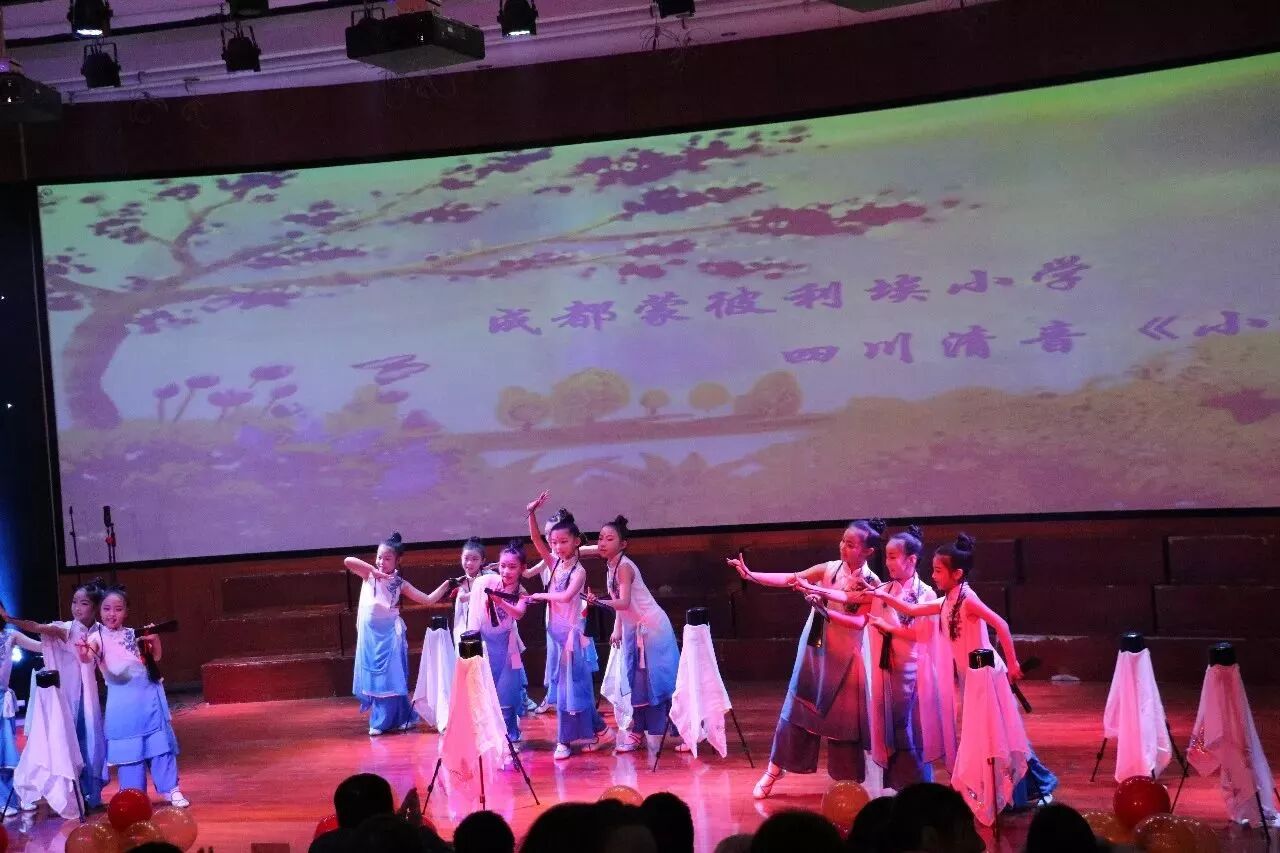 由蒙彼利埃小学的一群可爱的小姑娘带来的四川清音《小放风筝》充满了古典的韵味,加上孩子们童真的嗓音,更是将这首传统歌曲表现得更加活泼起来。(注:四川清音原名唱琵琶,是四川省的汉族戏曲剧种之一.《小放风筝》是四川清音的传统曲目之一,描写了在阳春三月,一群美丽的姑娘去踏青,放风筝时一路的所见所闻。)