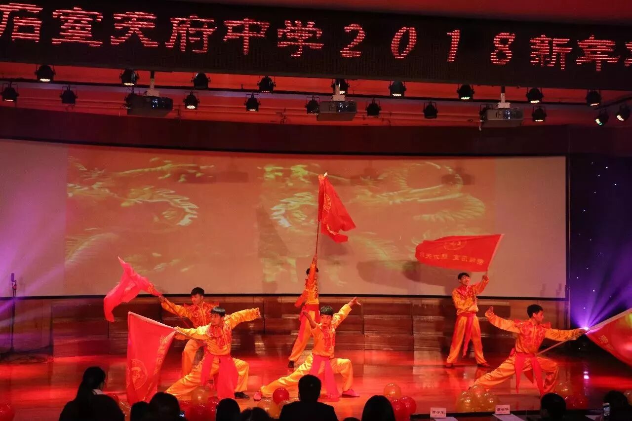 年会在气势磅礴的开场舞《旗开得胜》中拉开帷幕,演员们手中挥舞的红旗上印着“荣耀石室 榜样天府”,随着红旗在演员们手中翻转腾挪、猎猎飞舞,全场观众都拍手叫好,以这样的舞蹈作为开场舞,简直就是央视春晚既视感啊!这样恢弘大气的表演寓意着新的一年我校师生都能旗开得胜、再创辉煌!