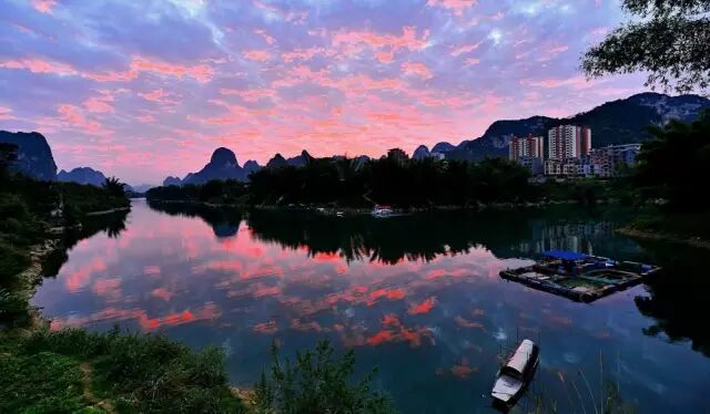 太阳初升,龙江河染上重彩,好似穿上绚丽的霓裳,美不可言!