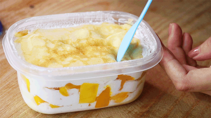 如果觉得千层蛋糕太大或者不方便吃,也不用担心!他们家还特制了方便携带的千层盒子,力荐榴莲、芒果两种口味,每天限量,分分钟卖断货!