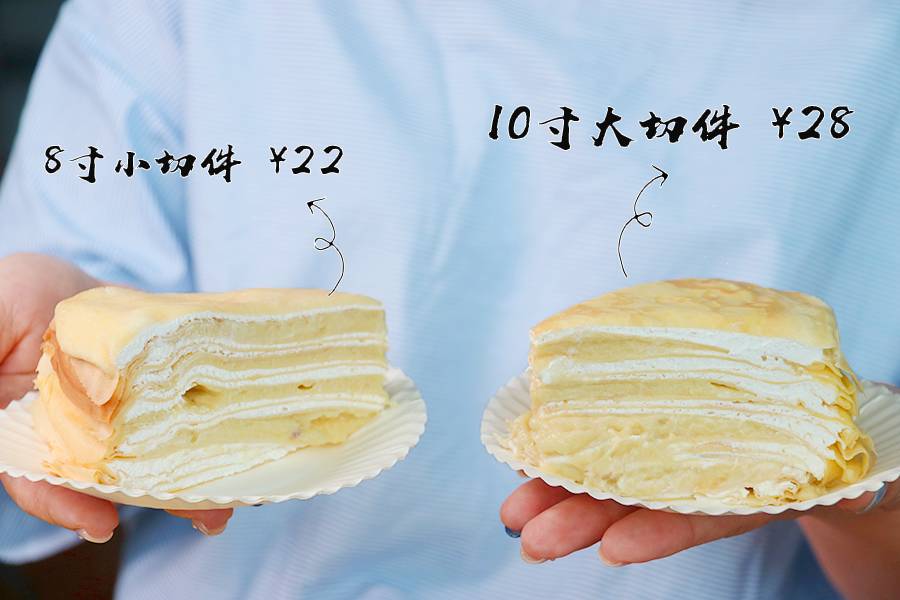 千层蛋糕根据不同人数,可以选择不同尺寸。6寸、8寸、10寸…还有Plus超强加厚版。
