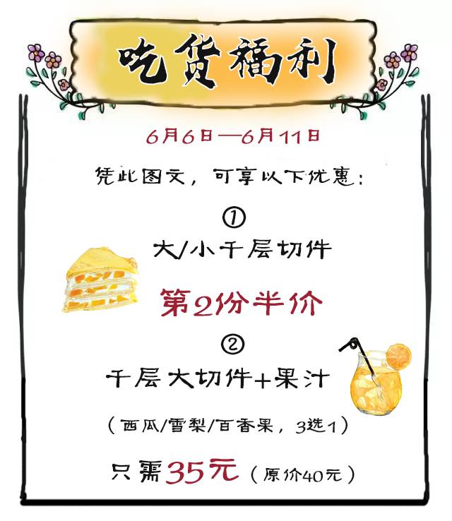 千层搭配现喝现榨的果汁再好不过,加之特调的夏季饮品,把蛋糕的甜腻驱赶得无影无踪,一下子又能多吃好几口!