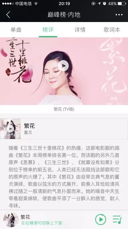 2017开年大剧《三生三世十里桃花》一夜之间火遍全国,其中电视原声歌曲也被观众们喜爱,在各大音乐平台被推至音乐榜单榜首。