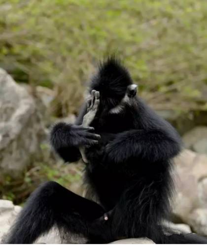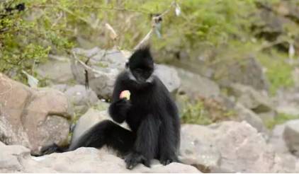 小黑叶猴的吃相不怎么“优雅”,像一只嗷嗷待哺的小奶狗。