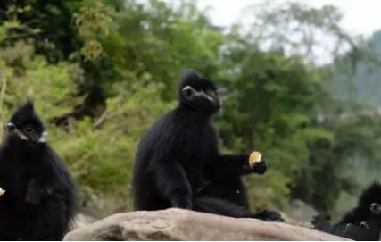 近日,记者来到沿河自治县麻阳河自然保护区里,近距离与一级保护动物黑叶猴接触,拍摄了一组难得一见的黑叶猴图片。