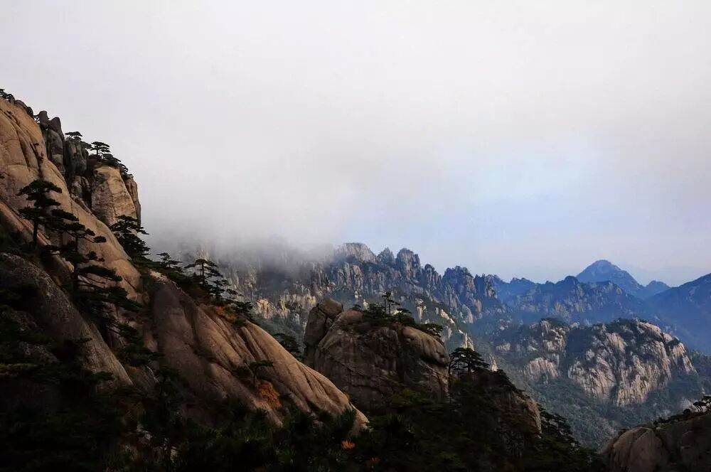 云雾是黄山的神来之笔,每当云雾弥漫群峰,黄山便成了“云海”。