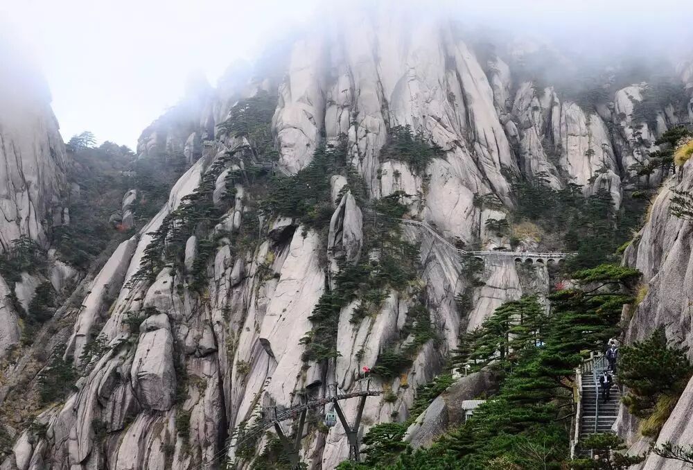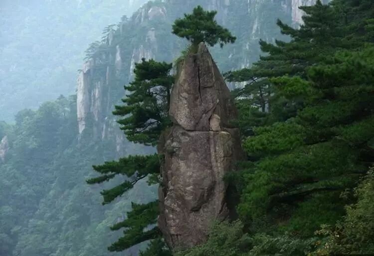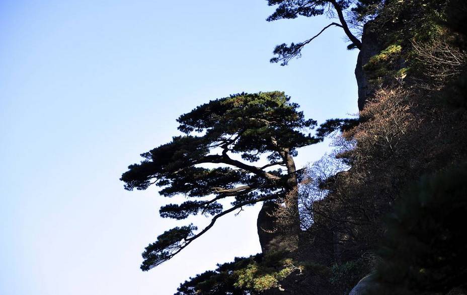 “四绝”之首是黄山松,它们形状各异,多生第于绝壁险峰之上。