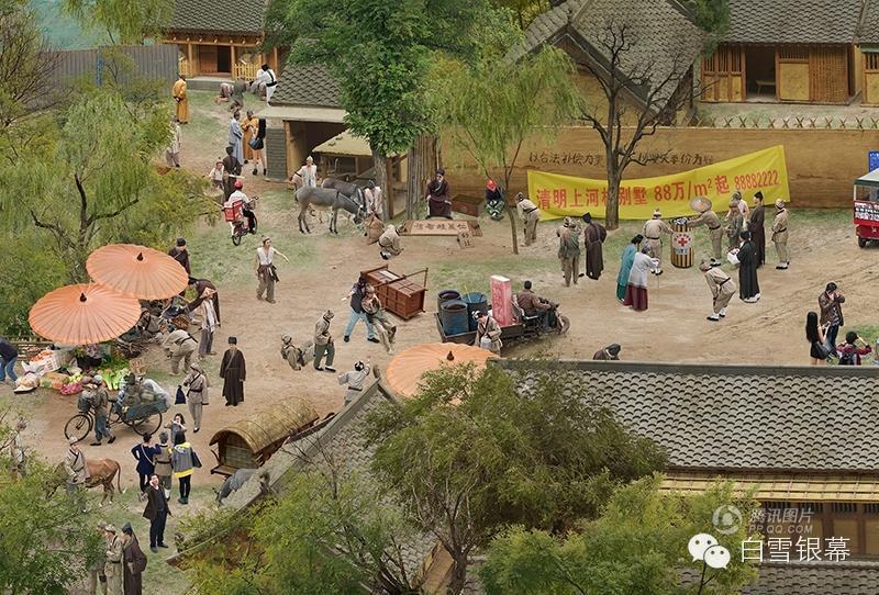 10、这幅长卷作品从开始构思到制作完成, 前后经历了两年半的时间, 基本上是以宋本张择端的《清明上河图》结构为蓝本,但对原画的人物和事件进行了全面改编。