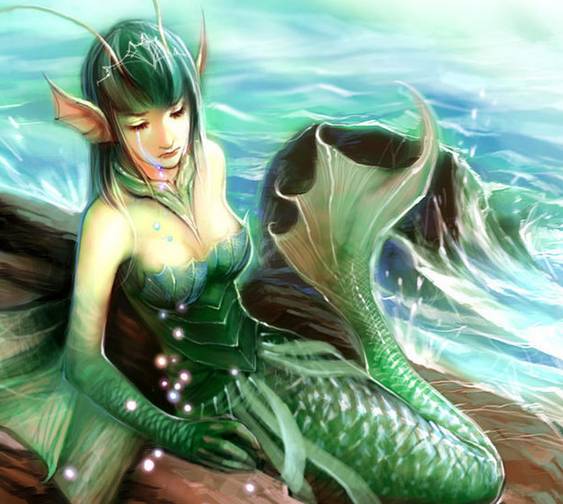 鲛人:鲛人,鱼尾人身,谓人鱼之灵异者。中国古代典籍中记载的鲛人即是西方神话中的人鱼,他们生产的鲛绡,入水不湿,他们哭泣的时候,眼泪会化为珍珠。