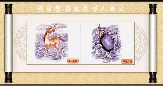 《礼记·礼运》:“河出马图。”因此孔子从古籍中记载得知,河图为伏羲时代黄河出现一匹龙马,其身上有文采图案,谓之龙马负图,伏羲将其文字记载下来,因其出于黄河,谓之“河图”。另外《论语·子罕》:“子曰,凤鸟不至,河不出图,吾已矣夫!”