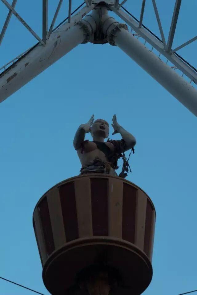 将近黄昏发现一废弃海盗船,设施破旧,已不再维护使用,此时此境,海盗船上面人偶呐喊的动作显得格外无力,按下快门,借此表达大势已去的无力感。