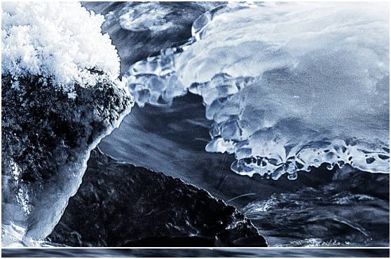 家乡的一条不冻河,太阳刚刚升起,本想拍些大场景,却被流水的韵律吸引了……