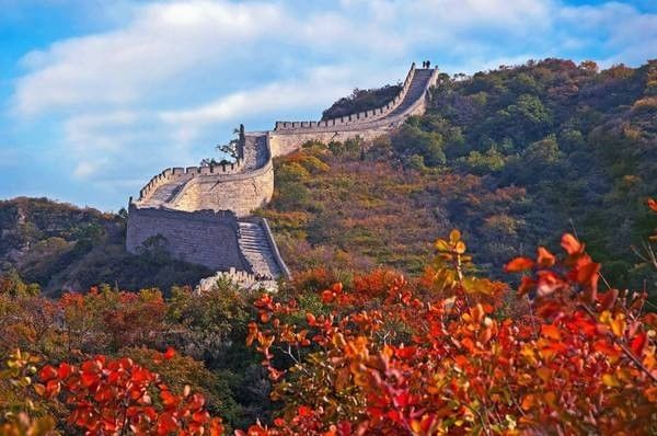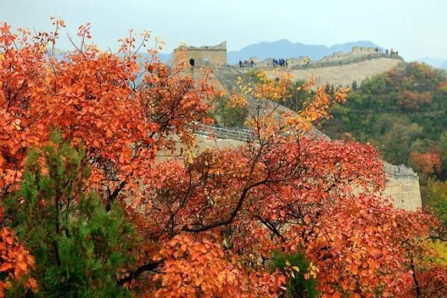 十月中旬前后,是慕田峪长城最绚烂恣意的季节,秋高气爽,云淡风轻。进入十月份,慕田峪长城旅游区内3000米的红叶带渐次染色,色彩斑斓的红叶映衬着雄伟壮丽的长城,为我们勾勒出一幅幅如诗如画般的金秋胜景,让游客尽情享受如梦似幻的长城“枫”情。长城台阶比较陡峭,可选择乘坐缆车上山,缆车双程100元,单程80元。