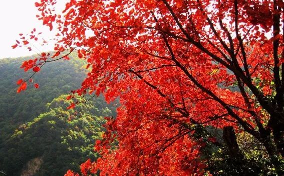 妙峰山的红叶,红的像火、红的像云,衬着金黄和翠绿,像一幅五彩斑斓的山水画。景区内枫林、松林、杏林、黄栌等,满眼红叶如火,万叶斑斓,层林尽染,十分壮观。这里距离市区近,除了赏红叶外,还可以欣赏妙峰山民间花会表演和进行山间采摘活动。