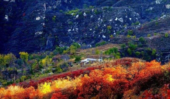 当红叶遇上佛香,便有了几百年的秋意风流。它始建于西晋永嘉元年,距今已有1700多年历史,故有“先有潭柘寺,后有北京城”之说。秋天是潭柘寺最美的季节,登山进香的路,便是赏玩红叶的路。红叶把漫山红遍,秋色也涂抹的层林尽染,而当金风过后,也便有了潭柘十景之一的“平原红叶”。