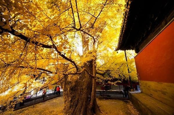 西山大觉寺千年银杏树最为世人所知,它高达30多米,干周长7.8米,种植于宋辽时期,距今已近千年。这里不但观赏银杏叶,红叶也是分外妖娆。古刹,红叶、银杏交相辉映,散发着宁静祥和的美感。
