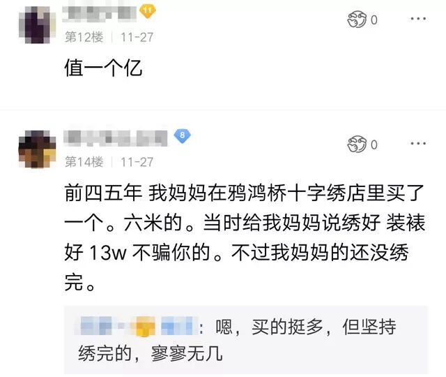 22米的《清明上河图》对田素艳而言是一项巨大的“工程”,4大本图册、几十种绣线、几百万的小格子……没有毅力是很难完成的。当得知她要绣这样一幅巨作时,很多人都觉得她不可能完成,但田素艳的家人却非常支持,这也成为她继续绣制的动力。“我妈眼睛不好,期间我们也劝过她别绣了,但是她一直坚持。怕她累着,我们就多做做家务,让她休息休息。”田素艳的儿子告诉记者。