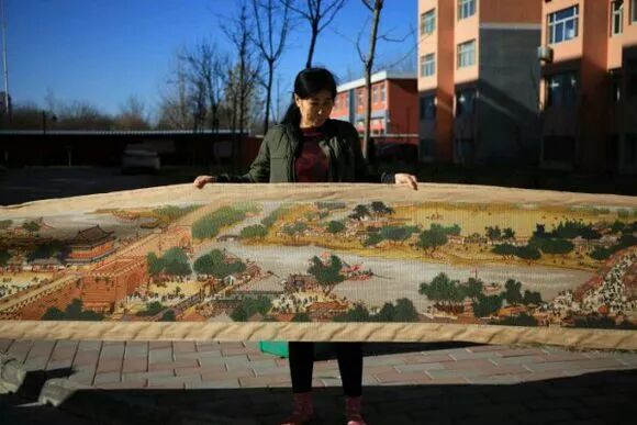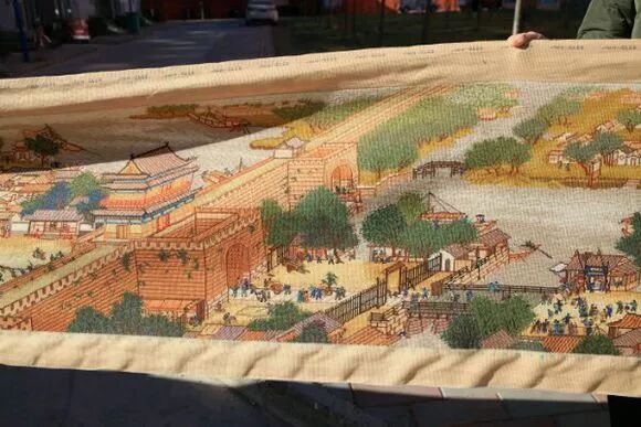 近日,家住玉田的50岁妇女田素艳完成了一件大事:总长22米的巨幅十字绣《清明上河图》终于封线完成了,这幅图花费了她6年多时间。