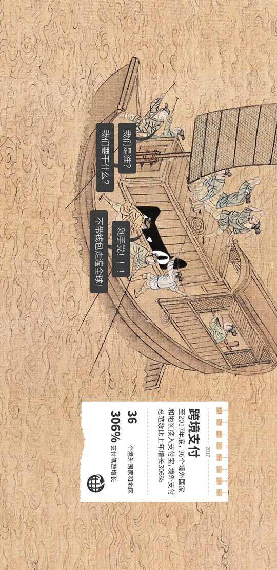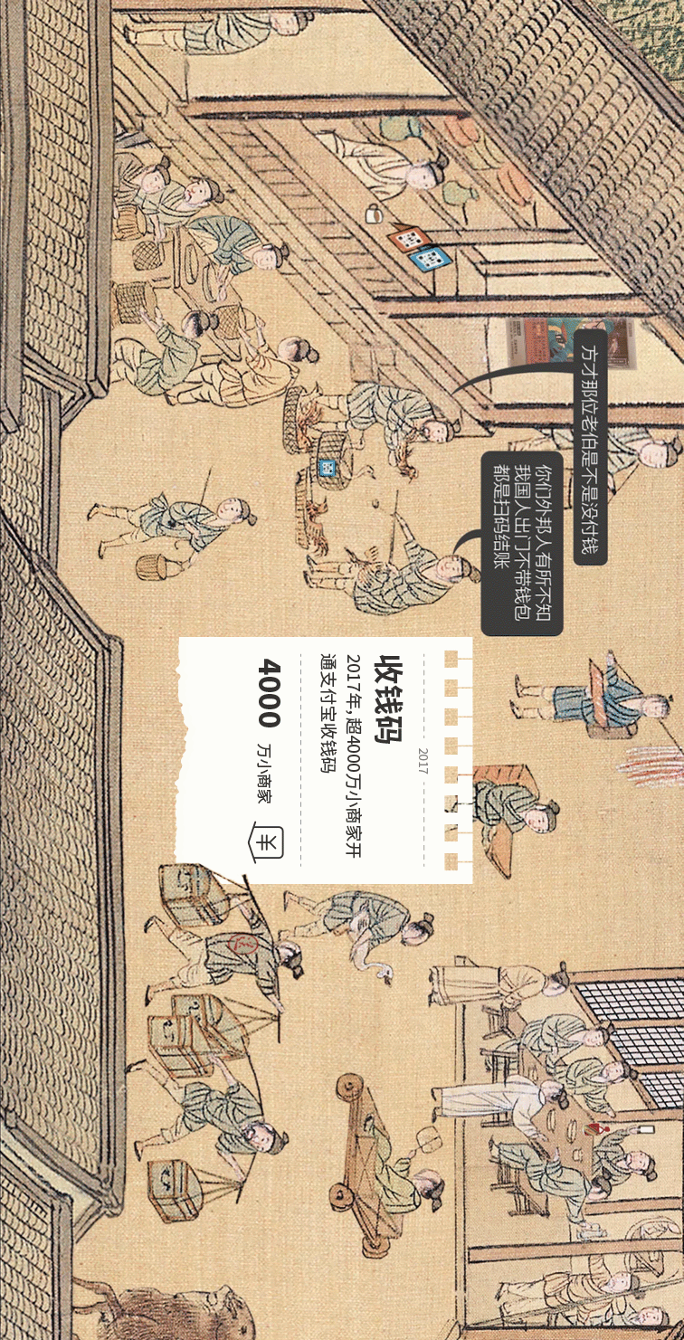 不得不说,此次支付宝用《清明上河图》来呈现账单,既有创意,而且非常具有趣味性,生动形象的表现出社会各阶层人民的生活水平。让原本枯燥的“全民年度账单”,变得轻松幽默,可以说是非常用心。