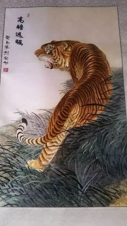 除过魏烈花正在绣的《景泰胡杨林》,记者还看到了墙上所挂的一幅《上山虎》。