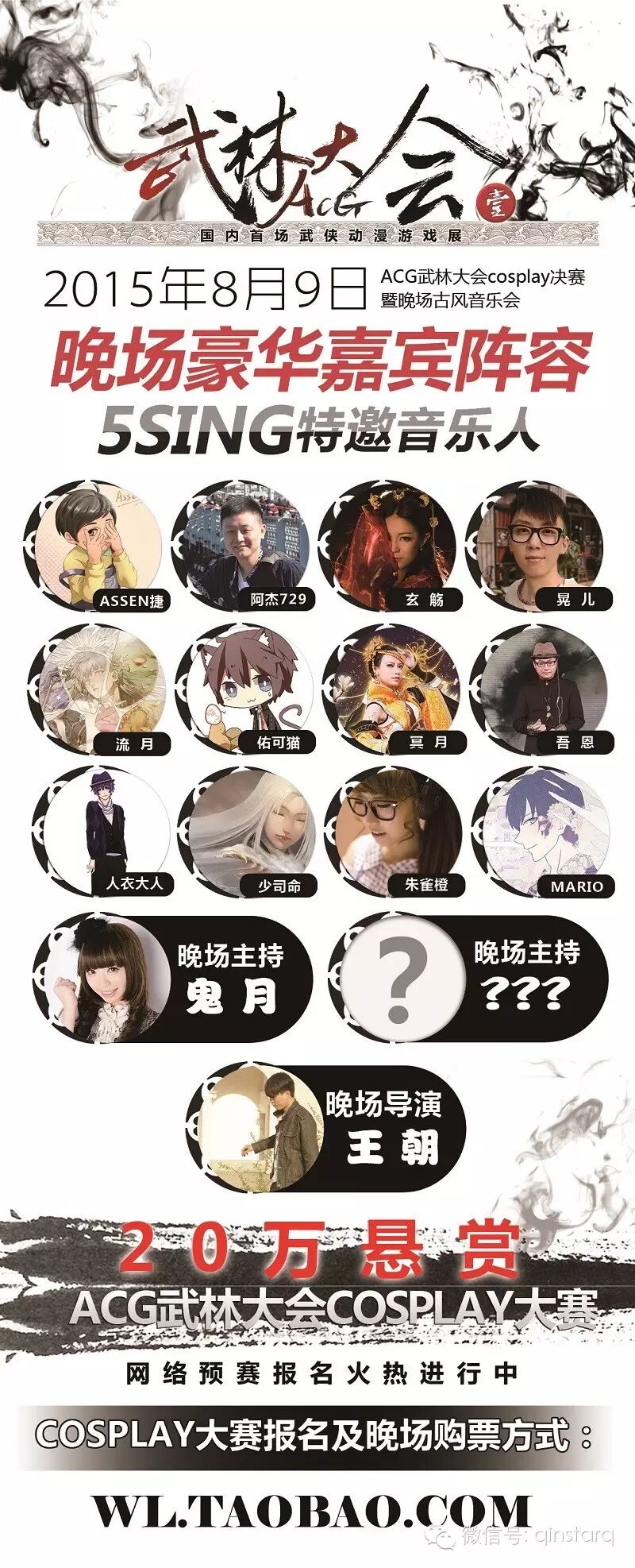 2015年8月8-9日杭州白马湖国际会展中心A馆,首届“ACG武侠游戏动漫展”带你走进江湖,8月9日晚最顶级古风音乐盛典,超豪华嘉宾阵容,超专业导演团队!