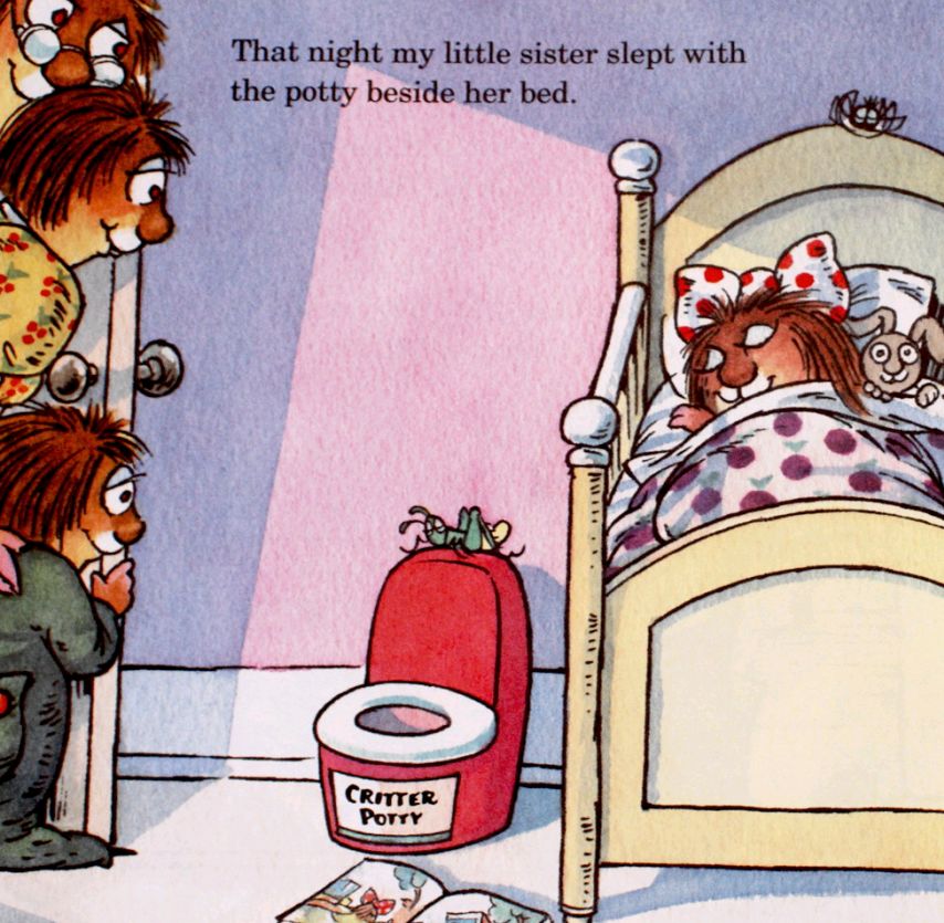 有时,他们的故事也让人哭笑不得。小怪物的妹妹,到了该用小马桶的年龄,妈妈给她买了一个马桶。对于妹妹来说,马桶就是她的新伙伴,从开始的害怕到后来的热爱致极。吃饭、看书、看电视就连睡觉也带着它。终于她学会了使用小马桶,长大了。但在小怪物的心里,妹妹永远都是“长不大的臭小孩”。