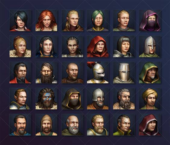 角色头像资源包,共有18种男性与12种女性角色,且涉及人类、精灵与小矮人3个不同的物种。所有头像分辨率一致,也提供了PSD源文件方便使用者自行修改。