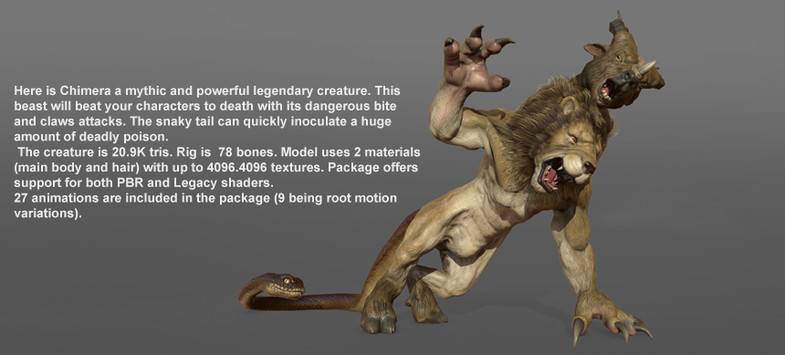 每种生物模型顶点数量在1~2.5万之间,骨骼数量为60左右,使用的纹理分辨率最低为1024x1024,最高为4096x4096,同时支持PBR与旧有的着色器类型。且所有生物均提供完善的动画。该资源适用于一些大型的3A级RPG游戏。