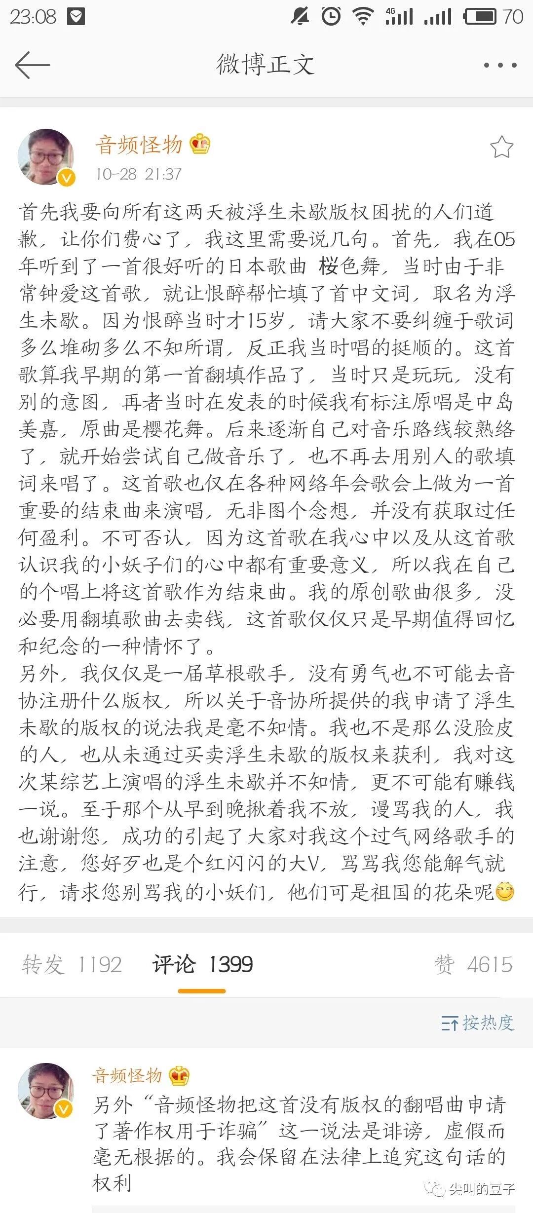 今天刷微博突然看到音频怪物的一条微博上了热搜。