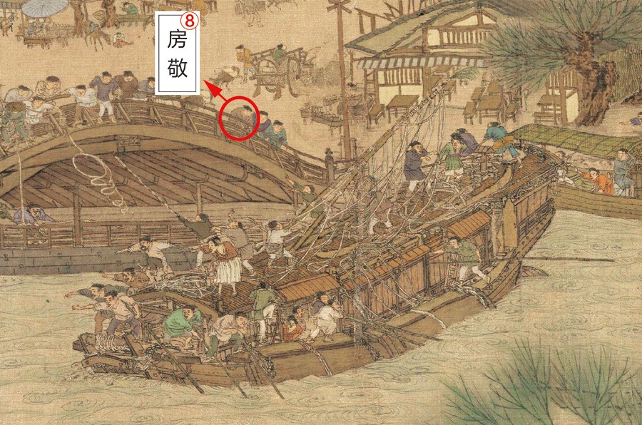 那只船正要穿过桥洞,却没有放下桅杆,眼看就要撞到,船上人才慌忙放倒桅杆。看似一时疏忽,实则有意为之。