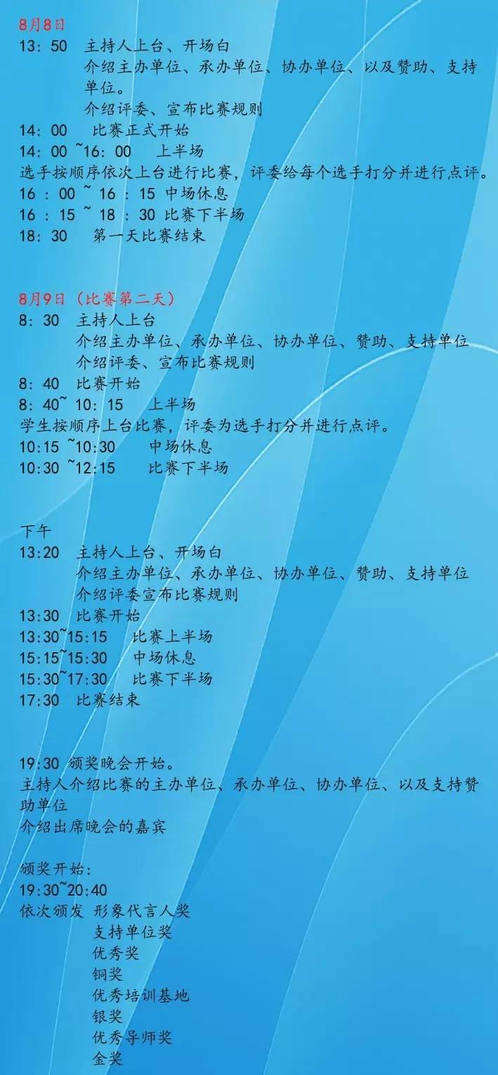 比赛采用评委现场打分并公布分数的方式进行评选,评分表一旦交出,评委即无权改动,评委的评审为最终结果。评审的结果以平均分计算,最高分十分,最低分7.01分,小数点后必须保留两位数。