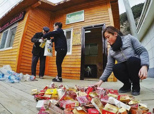 日前,在延安市黄龙县“垃圾兑换银行”,83岁的赵国贤老人(左一)带着两大包烟盒、烟头、废旧塑料前来兑积分换礼品。据悉,该县设立了47个村级“垃圾兑换银行”网点。“垃圾兑换银行”从2017年4月23日开始运营以来,为该县减少财政支出50多万元,为贫困户提供公益性岗位50多个。记者 张辰摄
