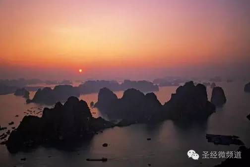 亚洲,越南下龙湾,热带海湾别样的美丽黄昏