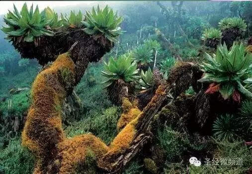 非洲,鲁文佐里山坡上巨大的千里光