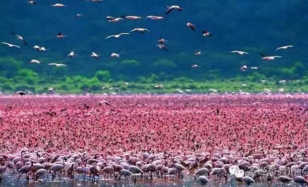 非洲,博戈利亚湖,觅食的火烈鸟