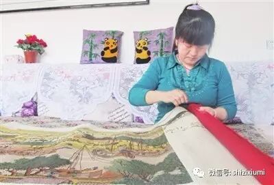 “一次,有位亲戚给我说,你绣的十字绣那么好,为什么不试着绣绣《清明上河图》呢?听说那个在市面上能卖不少钱呢!”王小燕说。