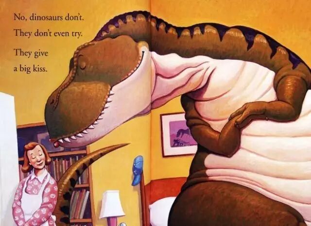 后半部分作者笔锋一转,否定了前面的所有假设,以孩子们最爱的恐龙亲身引导,引导孩子们应该如何去做。真正达到text-to-self connections(文本—自身的联结)的效果,这比父母的强硬说教管用上百倍,这也是这套书的魅力所在。