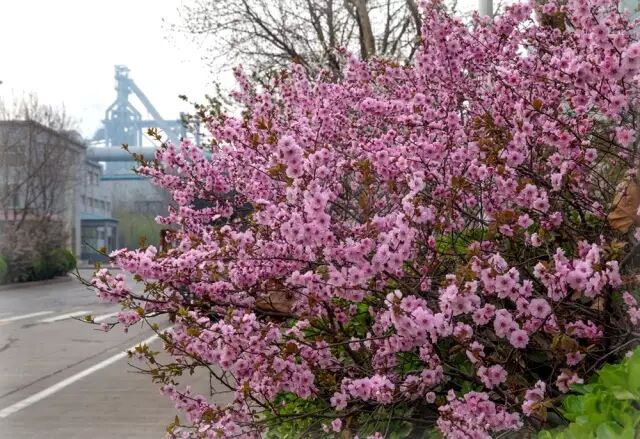 春风绽开花万朵,钢城美景醉人心。