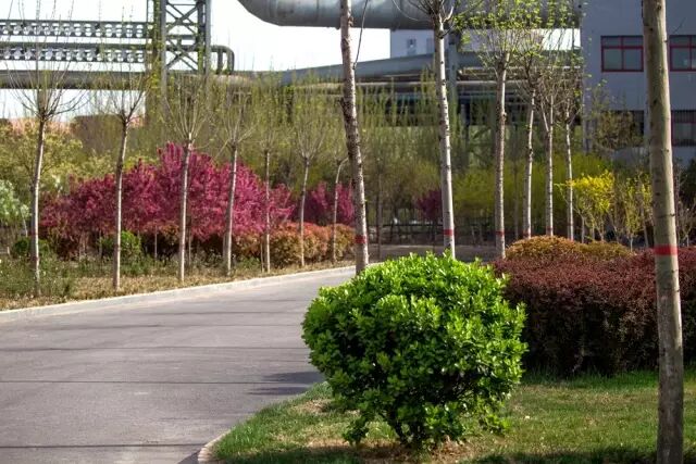 如今啊,行走在厂区,厂房洁净,粉堆红砌,花枝锦绣,树树皆春色。梨花盛开,桃花争艳,海棠香浓……干净整洁的厂区环境,清新宜人的绿色空间,清新扑鼻的花木草香,“厂在林中、路在绿中、人在景中”的景观效果,惹人心醉。