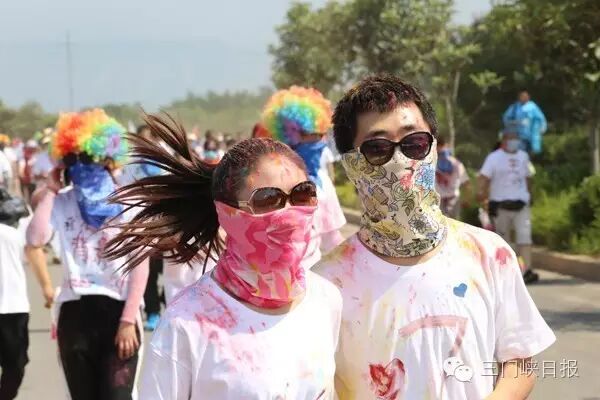 据了解,彩虹跑2011年发源于美国,号称是“地球上最多彩、最快乐的5公里跑”,参与者身着统一或相近的浅色T恤,跑步途中经过不同颜色的彩粉站,会被从头到脚撒上由玉米粉制成的彩粉,人们相互嬉戏追逐,共同营造五彩斑斓、青春活力的运动氛围。(文/记者 师宝华 图/记者 张朝峰)