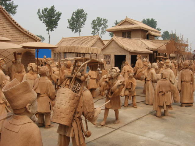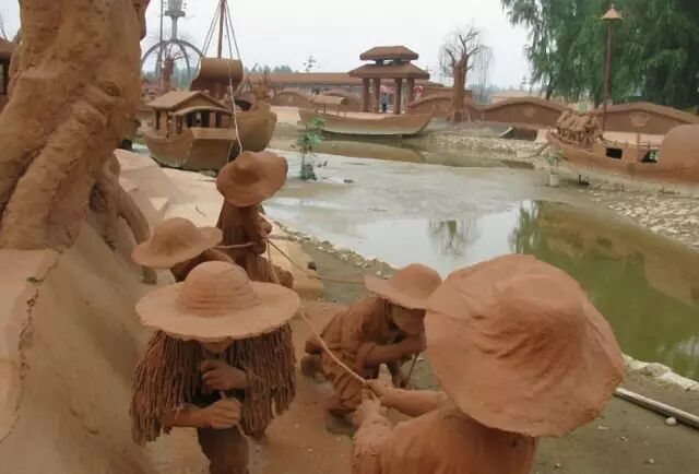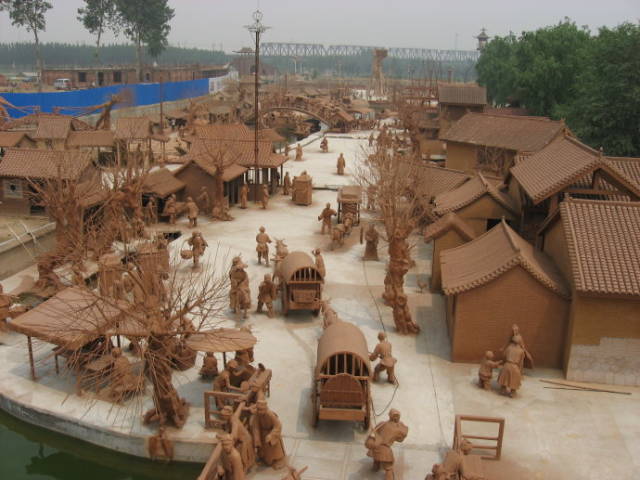 泥塑园于2007年筹建,由秦仕平带领汇聚全国各地的泥塑专家和泥塑工作者,历经整整四年的时间花费了1.2个亿,占地500亩的园区得以在2011年6月开园。作品以精湛的泥塑艺术,再现了500多个栩栩如生的人物画面,50多匹牛、马、骡驴,20多艘大小船只;塑造了城楼、拱桥、郊野、码头、街镇等气势恢宏的生活场景。