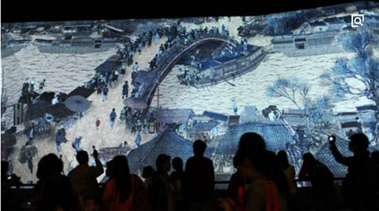湍急的汴河流过,船只摇曳前进,河面上上纤夫吆喝,河岸酒保、货郎穿行。这幅历史上仿本最多的中国传世名画《清明上河图》以一种从未有过的声、光、电多维方式展现在你的面前。