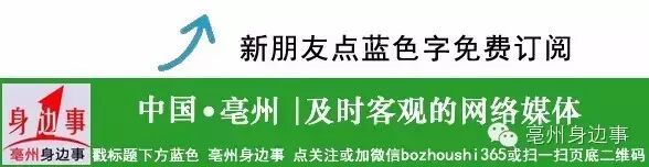 订阅本刊:长按下方二维码“识别图中二维码”即刻“关注”(6.1以上版本微信);或点本文标题下方蓝色“亳州身边事”一键关注;或微信“扫一扫“下方二维码.